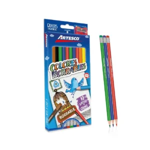 COLORES TRIANGULARES BORRABLES LARGOSX12 UNID +SACAPUNTAS