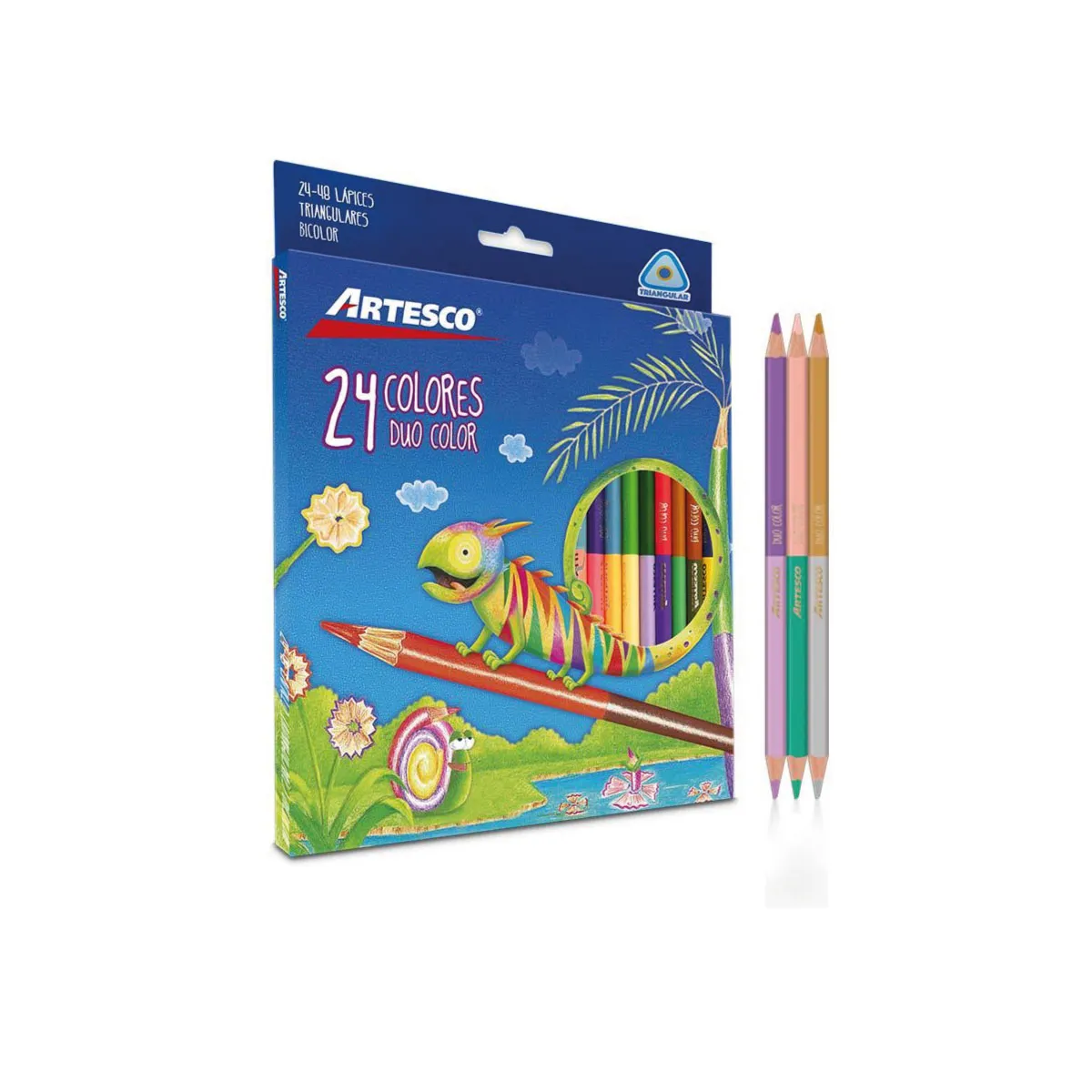 •Presentación con 24 colores dúo. •Minas fuertes y resistentes a quebraduras. •No tóxico. •Imágenes referenciales.