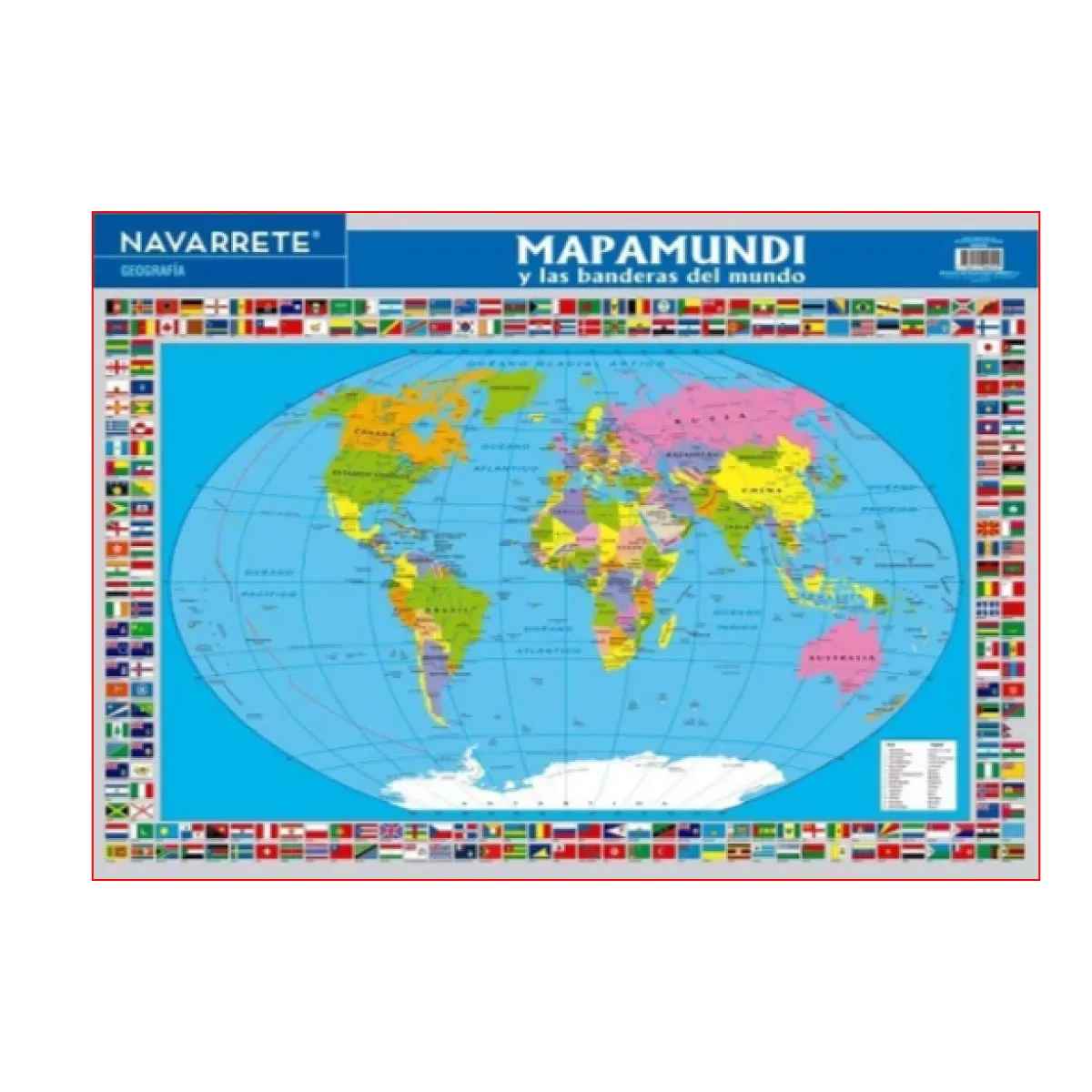 Lámina mural 50 x 70 cm Mapamundi y las Banderas del mundo