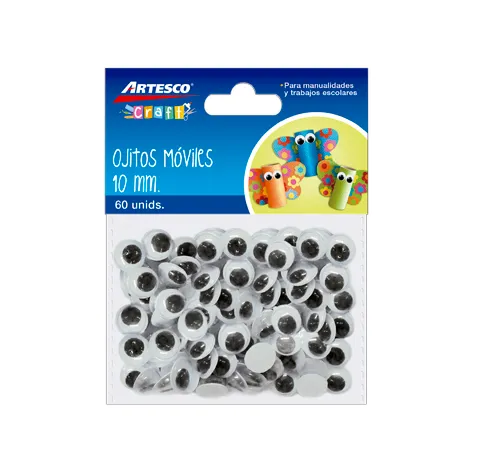 Accesorios adecuados para todos los proyectos de manualidades. Material plástico. Ojitos Móviles 10 mm Bls. x 60 und