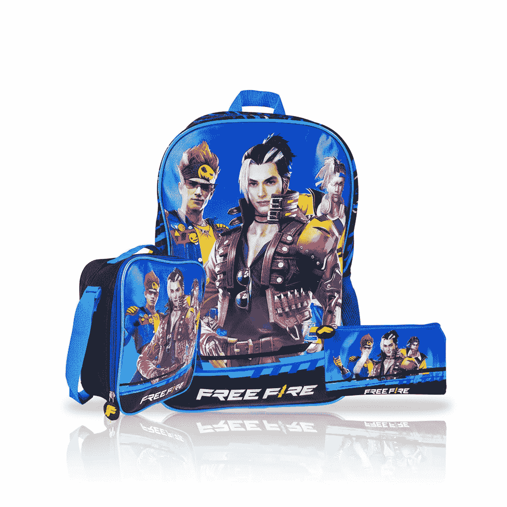 SET MOCHILA OFICIO+LONCH CDRDA TELA+CART TELA FREE FIRE