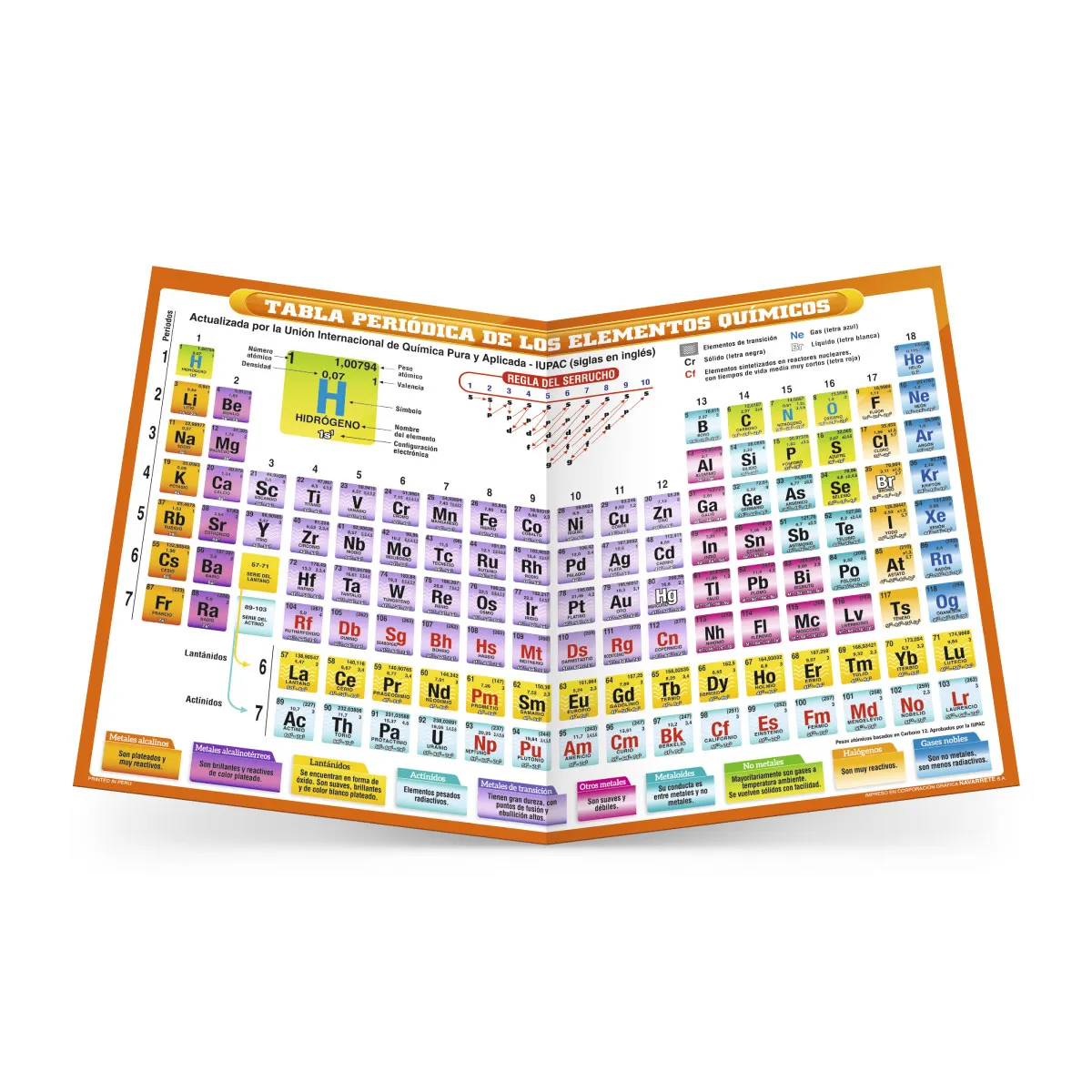 🧪🔬 La tabla periódica de los elementos es una herramienta esencial para el estudio de la química, tanto en el nivel secundario como en educación superior. Esta edición impresa y actualizada está diseñada para facilitar la comprensión de los elementos químicos, sus propiedades y su clasificación dentro del sistema periódico.